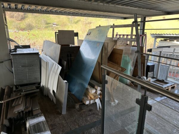 Posten altes Material wie Mustergeländer, Wintergarteneckprofile, Schachtgitter, Glastüren, etc. |